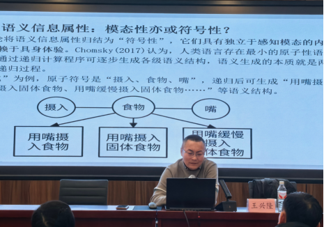 近年来,王兴隆副教授一直聚焦于多模态语言学、词汇语义网络等国际前沿领域的相关学术探索,在《外语教学与研究》《世界汉语教学》《现代外语》《语言文字应用》《语言教学与研究》《语言战略研究》《华文教学与研究》等重要期刊连续发表一些列重要成果。此次讲座题目是“计算论与具身论:语义认知观的争论、困境及反思”,主要探讨计算论与具身论在语义认知观上的争论、困境及路向。讲座归纳了计算论与具身论的争论焦点、阐释了二者共同面对的理论困境、提出了“计算-具身”融合路向及融合框架。该框架在一定程度上突破了两种理论的二元对立,也为解决其共同困境提供了新思路。讲座后,现场师生对相关话题进行了较热烈的讨论。