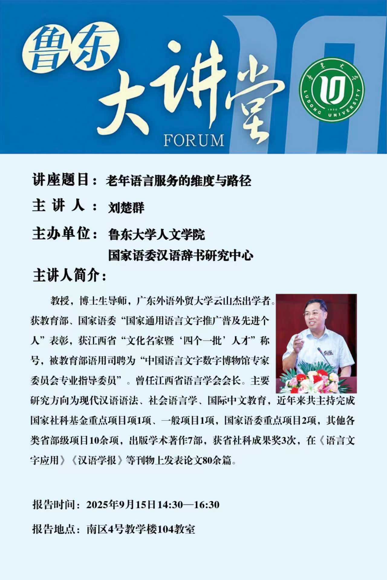 讲座预告 | 刘楚群:老年语言服务的维度与路径